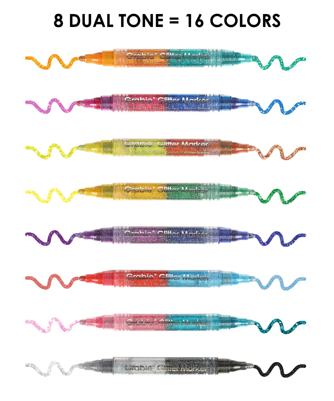 GRAA AS - Dual Tone Iridescent Glitter Acrylic Paint Marker Set Of 8