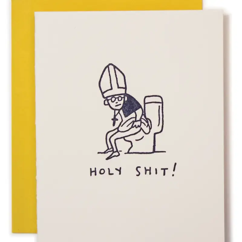 Letterpress printed navy blue Pope, sitting on the throne. Hey listen, everybody poops!