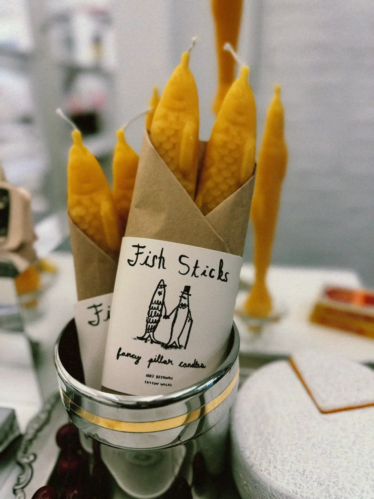 These fancy taper candles are made from beeswax and have a cotton wick and are perfect for your fish loving friends.